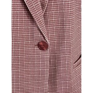 Keywords: Liverpool, blazer, gingham, red, white, tailored, womenswear, business casual, office attire, sophisticated, classic, single button, patterned