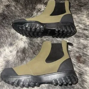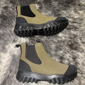 Step out in style with these olive and black Chelsea boots. Perfect for any occasion, these boots offer both comfort and durability.