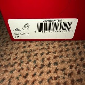 Stunning red patent leather heels. Features buckle detail. Sleek and stylish design.