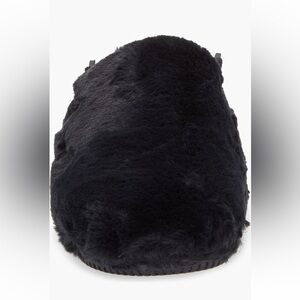 Soft and warm fuzzy slippers in black. Perfect for lounging. Enjoy a calm, comfortable experience—no matter where your day off takes you. Made with soft yet responsive foam and blanketed in super cozy material, these versatile mules feature a minimal design that’s easy to wear. And the heel strap is both adjustable and removable to give you a personalized fit.