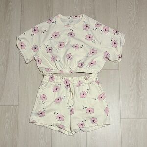 Arizona Jean Company Floral Top And High Waist Shorts in Pink and Cream Set