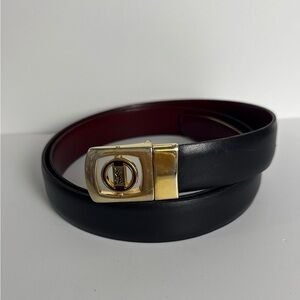 Vintage YSL Yves Saint Laurent Reversible Leather Belt 36/90 Gold Logo Buckle