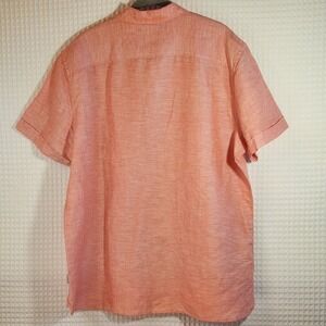 Perry Ellis Shirt Mens Linen Peach Short Sleeve Collared Button Cool XL