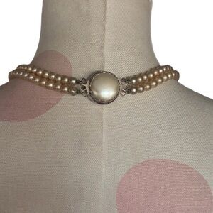 Vintage Double Strand Faux Pearl Choker Necklace