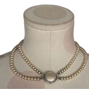 vintage pearl necklace double strand pearls faux pearl choker mid century rhinestone clasp classic vintage jewelry bridal pearls retro necklace