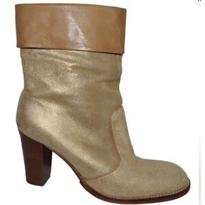 Women's KENNETH COLE New York Shimmery Gold and Tan Leather Mid Calf/Ankle Boots