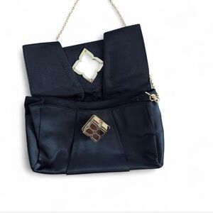 BCBGMAXAZRIA Satin Bow Clutch w/ Gold Chain Elegant Turn Lock