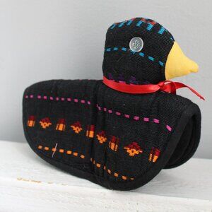 Vintage Handmade Black Multicolor Duck Embroidered Pattern Pot Holder