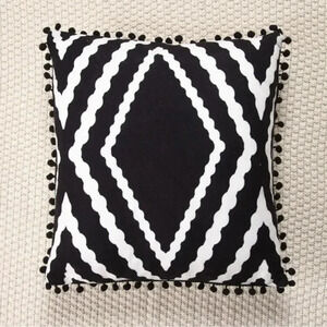 Black & White Pom Pom Decor Cushion Cover Without Filler