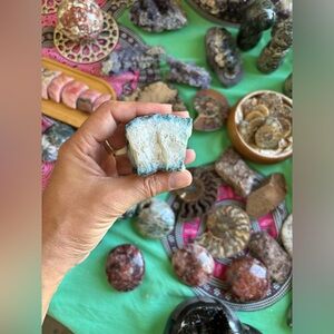 In the realm of spiritual growth, blue calcite is often used during meditation to aid in the development of psychic abilities & to foster a deeper connection with one’s spiritual self. Its energy is said to promote emotional healing by clearing negative emotions and fostering a sense of balance & stability.