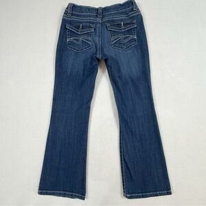 Classic and flattering Lee Slender Secret jeans in women’s size 12 Petite. Designed with a lower waist fit and comfortable stretch denim blend for a slimming silhouette. Features include bootcut leg, button-flap back pockets with contrast stitching, and traditional 5-pocket style.