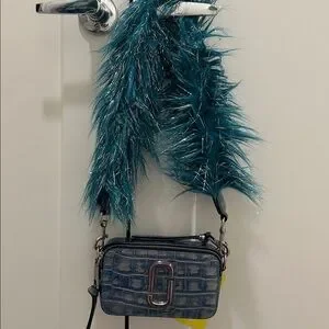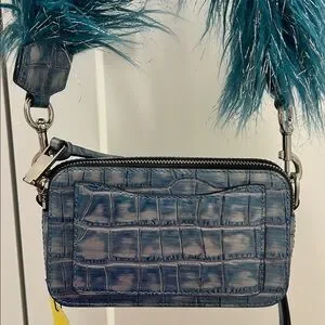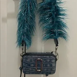 Marc Jacobs (NWT) Snapshot Camera Bag in Blue Croc-Embossed Leather & Faux-Fur