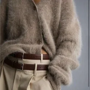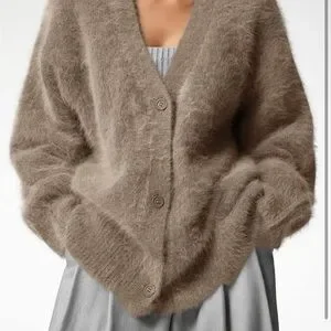 Stay warm and stylish with this cozy brown cardigan sweater. Perfect for layering, this piece adds a touch of elegance to any outfit.