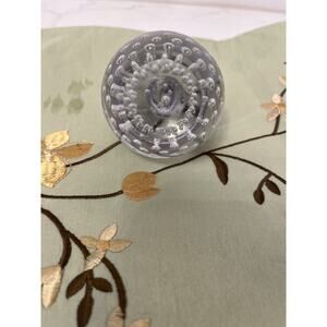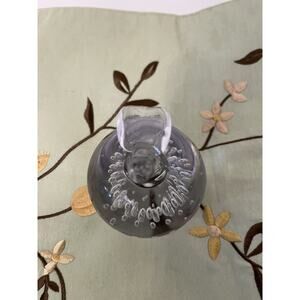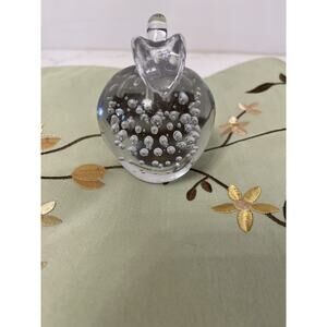 Vtg. Art Glass Clear Apple Paperweight Control Bubbles with Clear Leaves