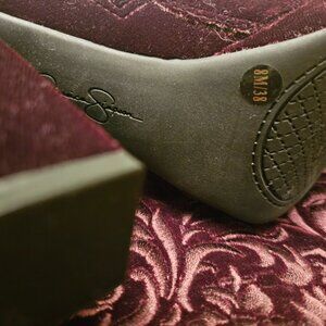 Jessica Simpson platform 4.5" with a 0.5" platform boots. Burgundy velvet with floral embroidery over-the-knee zippered boots. Excellent condition. Style is Grizella. Hard to find. Size 8.