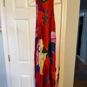 Anthropologie Red and Blue Floral Maxi Dress