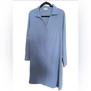 Status by Chenault NWOT Roll Tab Button Front Duster Shirt/Dress In Cornflower