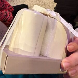 Stylish Rae Dunn white salt and pepper shakers with elegant lettering. Ideal for modern dining.