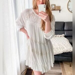 Boho white midi flowy dress
