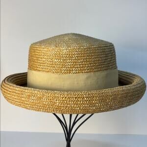 Elegant Vintage Liz Claiborne straw hat with a natural weave. Ideal for sunny outings. gently used excellent condition.