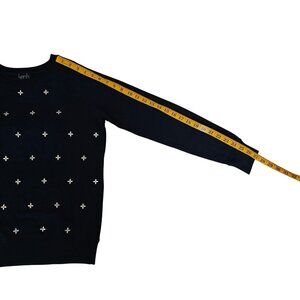 Kersh Navy Blue Rhinestone Embellished Cotton-Jersey Crewneck Sweater Sz Medium
