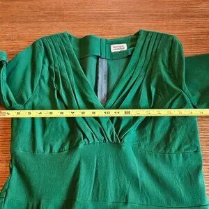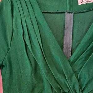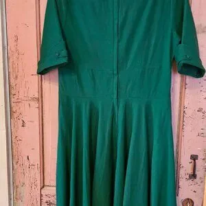 CALLING ALL BOMBSHELLS -- this dress is a stunner! This is a vintage-inspired, emerald green swing dress. Very flattering with a fitted waist, deep V-neck and a full skirt. Worn only twice.