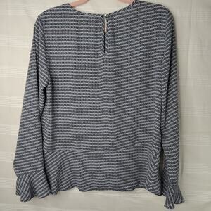 Banana Republic Factory Peplum Bell Sleeve Blouse Blue and White Chevron Medium