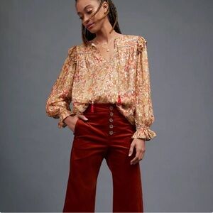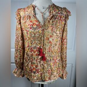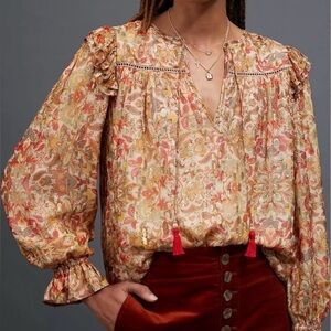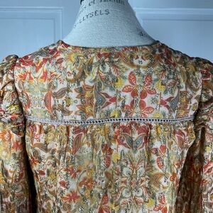 Anthropologie’s Love the Label Floral Peasant Blouse Gold/Orange Hues Size XS