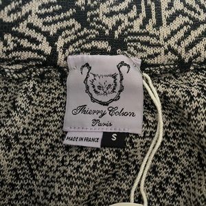 Thierry Colson Wool Mini Skirt Black Cream Pleated Size Small New with Tags. MSRP$379. Made in France. Wool blend. Elastic waist. Pull on. See photos for measurements.