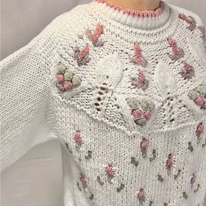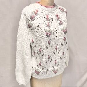VINTAGE cottage floral chunky knit sweater feminine romantic 80s 90s cottagecore