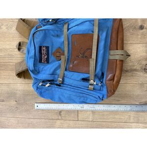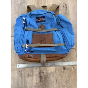 JANSPORT Vintage 80s Leather Bottom Hiking Backpack Daypack Outdoors USA Blue