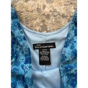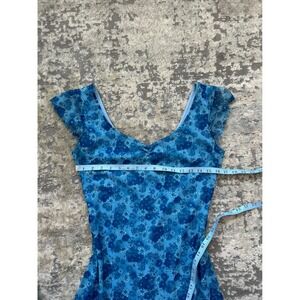 Vtg sleeveless blue floral lettuce hem sweetheart neckline mini dress formal M
