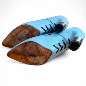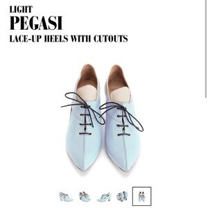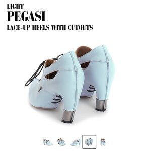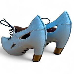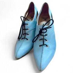 Gorgeous baby blue lace up pump shoe with cut outs.