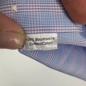 Ledbury Mens Classic Fit Long Sleeve Shirt 16 Blue Pink Gingham Check Cotton
