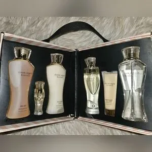 This is a complete 6-piece set, all brand new and unused, housed in the original hard-sided collectible carrying case. A rare find for collectors and fans of discontinued Victoria’s Secret fragrances.