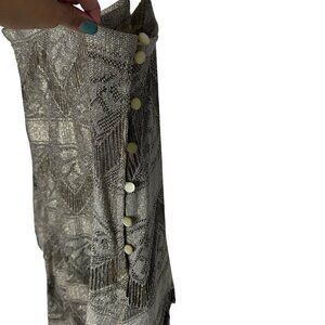 Vintage Damianou Size S Metallic Lace Scalloped Hem Flapper Dress Great Gatsby