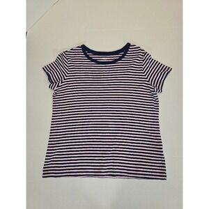 Lands' End Striped T-Shirt Women's L/P Petite Pink Navy Blue Short Sleeve L