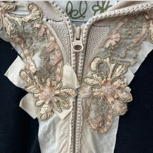 Anthropologie Field of flowers black creme beaded floral zip up sweater