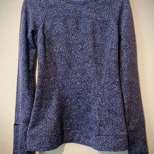 Lululemon Cypress Kiss Long Sleeve Shirt in the color “Fusion Jacquard Black Violet”, Size 2, slim fit, Thicker than a normal tshirt material, Has a soft technical fabric, has thumb holes, In perfect condition, barely worn, Smoke Free / Pet Free Home.