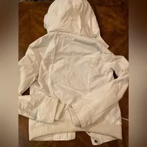 Chic off-white ski jacket with hood. Ideal for winter sports.