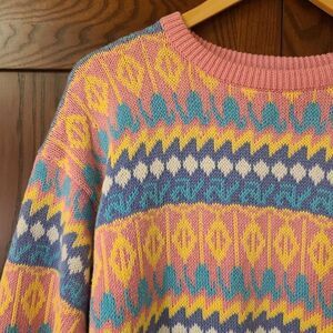 Vintage Pastel Geometeric Sweater 100% Cotton Brass Plumb Nordstrom