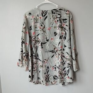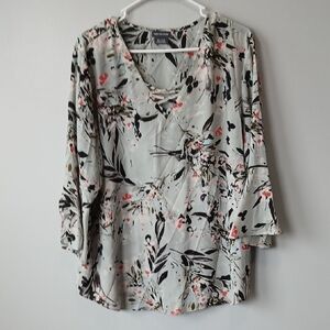 Van Heusen Floral Gray Watercolor Bell Sleeve Blouse Size XL Office Wear