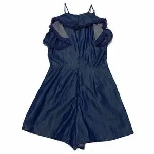 Moon River Embroidered Floral Denim Chambray Romper NWT