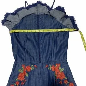 MOON River Embroidered Floral Denim Romper XS Nwt