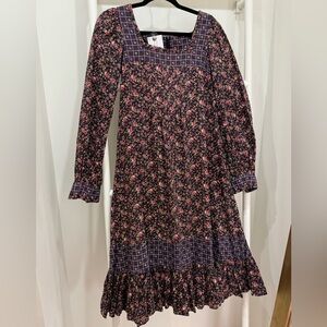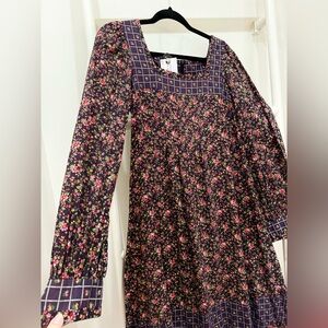1970s Gunne Sax Vintage Long Sleeve Calico Floral Tent Midi Dress Size 9
