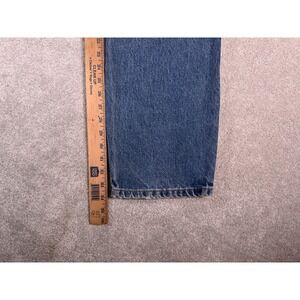 The Polo Jean Co Vintage Pants are a stylish and classic addition to any man's wardrobe. Made from cotton denim in a solid blue color, these straight-fit jeans feature a classic 5-pocket design with a zip and button closure. The size 34x34 waist and inseam make them a comfortable and versatile choice for any casual outfit. Show off your patriotic style with the flag-themed design, perfect for summer, fall, or spring. Made by Polo Ralph Lauren, these Y2K-inspired denim pants are machine washable for easy care.