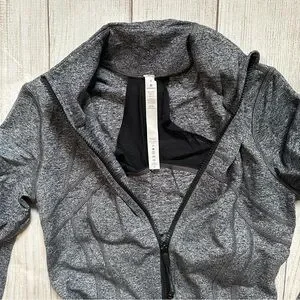 Zip up jacket Size 6, fits like a 4, has stretch, front zipper, side zip pockets, thumb holes. Leggings Size 4, fits like a 2/XS, has some stretch, inside pocket. Both heather gray color. Worn 2x.