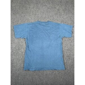 This vintage Grateful Dead Chicago Soldier Field shirt by Liquid Blue is a medium size men's t-shirt featuring a design with a soldier character in blue. The shirt is a single stitch and made in the United States, perfect for fans of both the Grateful Dead and the USA theme. Made with high-quality materials, this shirt is a unique and nostalgic piece for any collector or fan of the band. Perfect for showcasing a love for American culture and history.