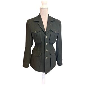 HERITAGE Wool Military or Safari Jacket Cinched Waist Tailored Utility Blazer