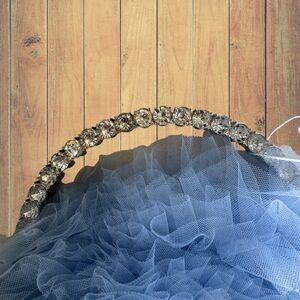 NEW Badgley Mischka Jewel Baby Blue Tulle Bag With Rhinestone Handle